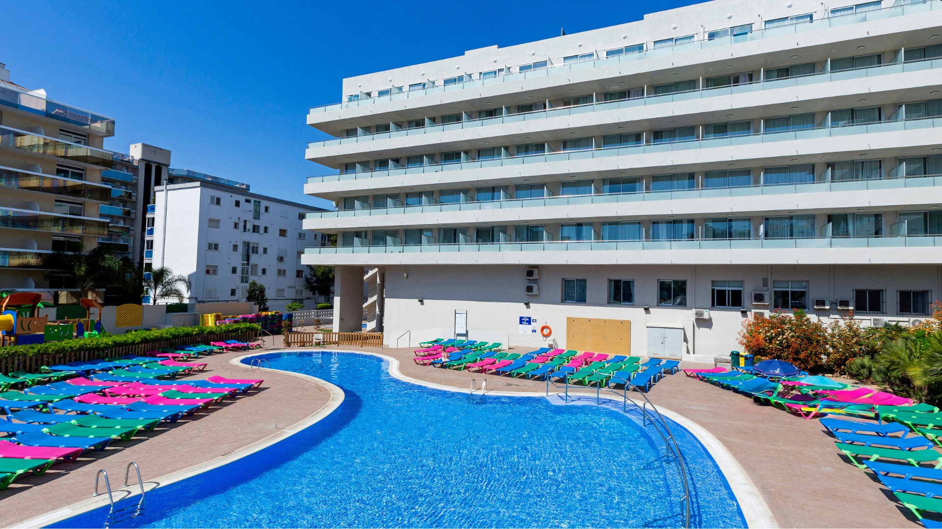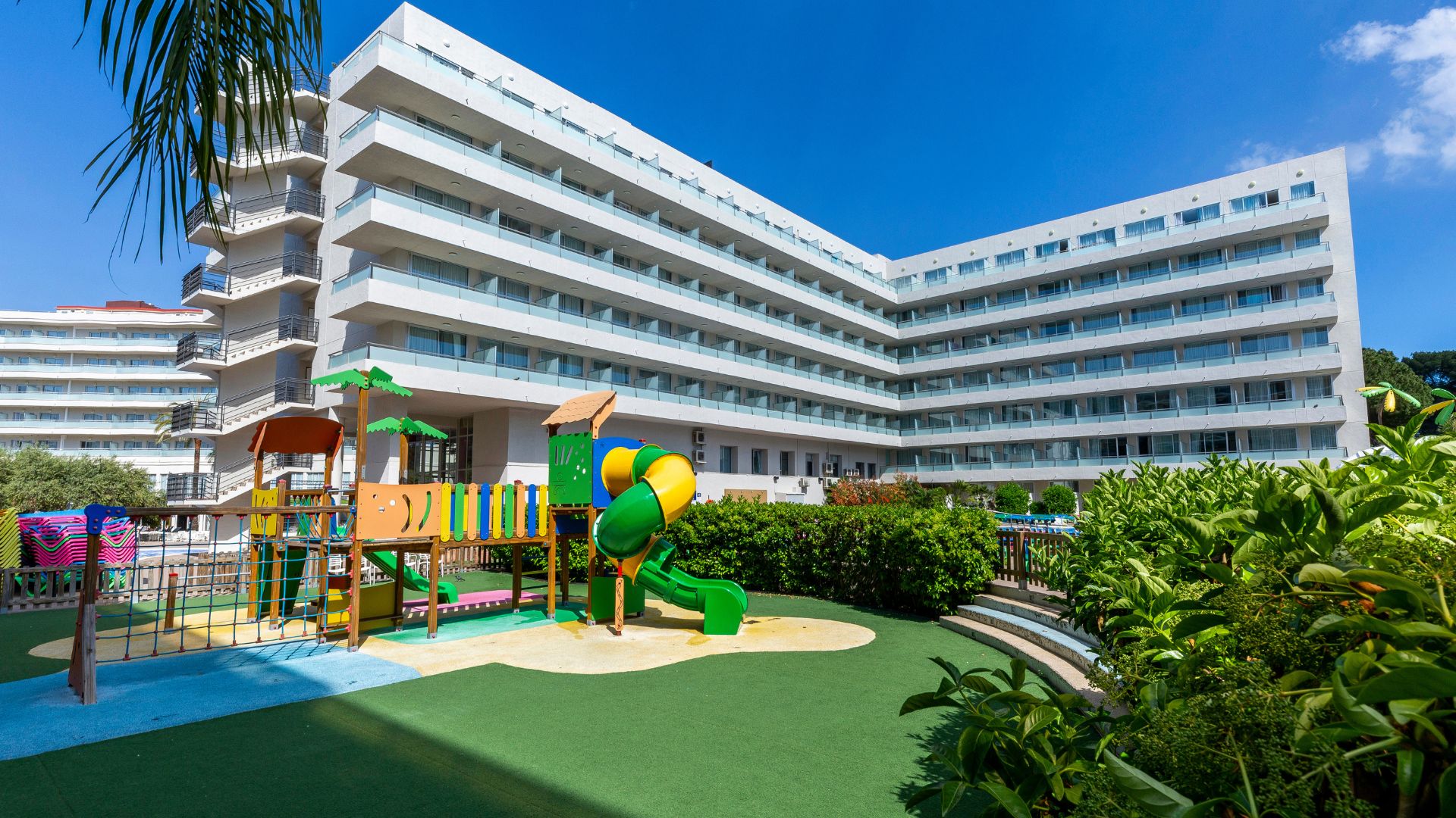 El hotel ha renovado también su zona exterior de piscinas, que ahora incluye una gran piscina con splash park, perfecta para que los más pequeños se diviertan mientras los adultos se relajan. Además, cuenta con parque infantil, sala de juegos, bares, salones, un restaurante bufé y el restaurante Al Fresco. Durante el verano, la diversión está asegurada con un programa de animación para todas las edades.